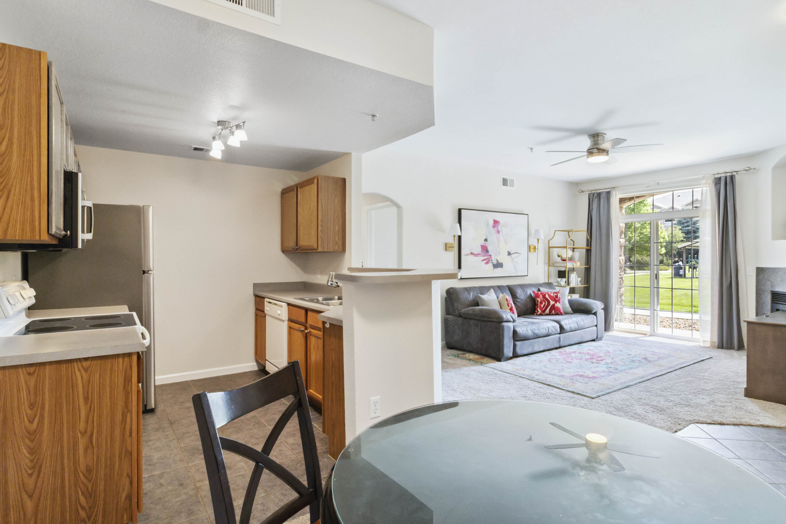 Step into a bright and open layout, where natural light fills every corner of the living, dining, and kitchen areas—creating an airy and welcoming space for both everyday living and entertaining. Cozy up by the gas fireplace on chilly evenings, or soak in the Colorado sunshine from your private ground-level patio, with no stairs and easy access.